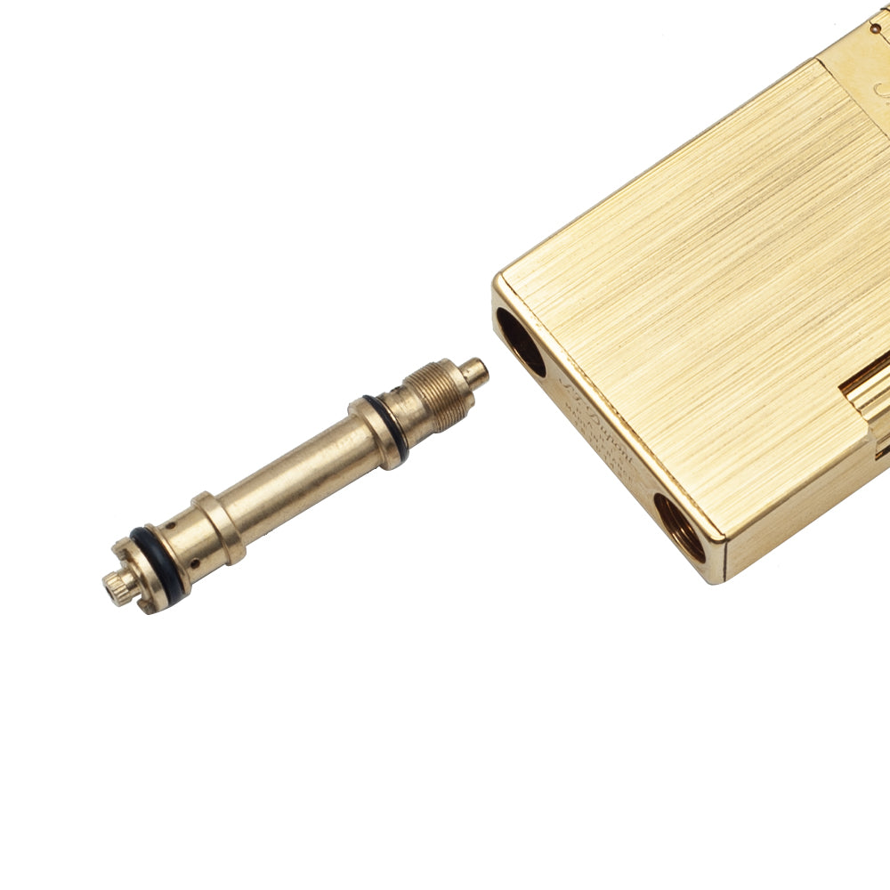 This flame adjustment valve mechanism is designed for S.T. Dupont style lighters and is used to regulate gas flow and control the flame height. It is an essential replacement component for repairing or maintaining your lighter.